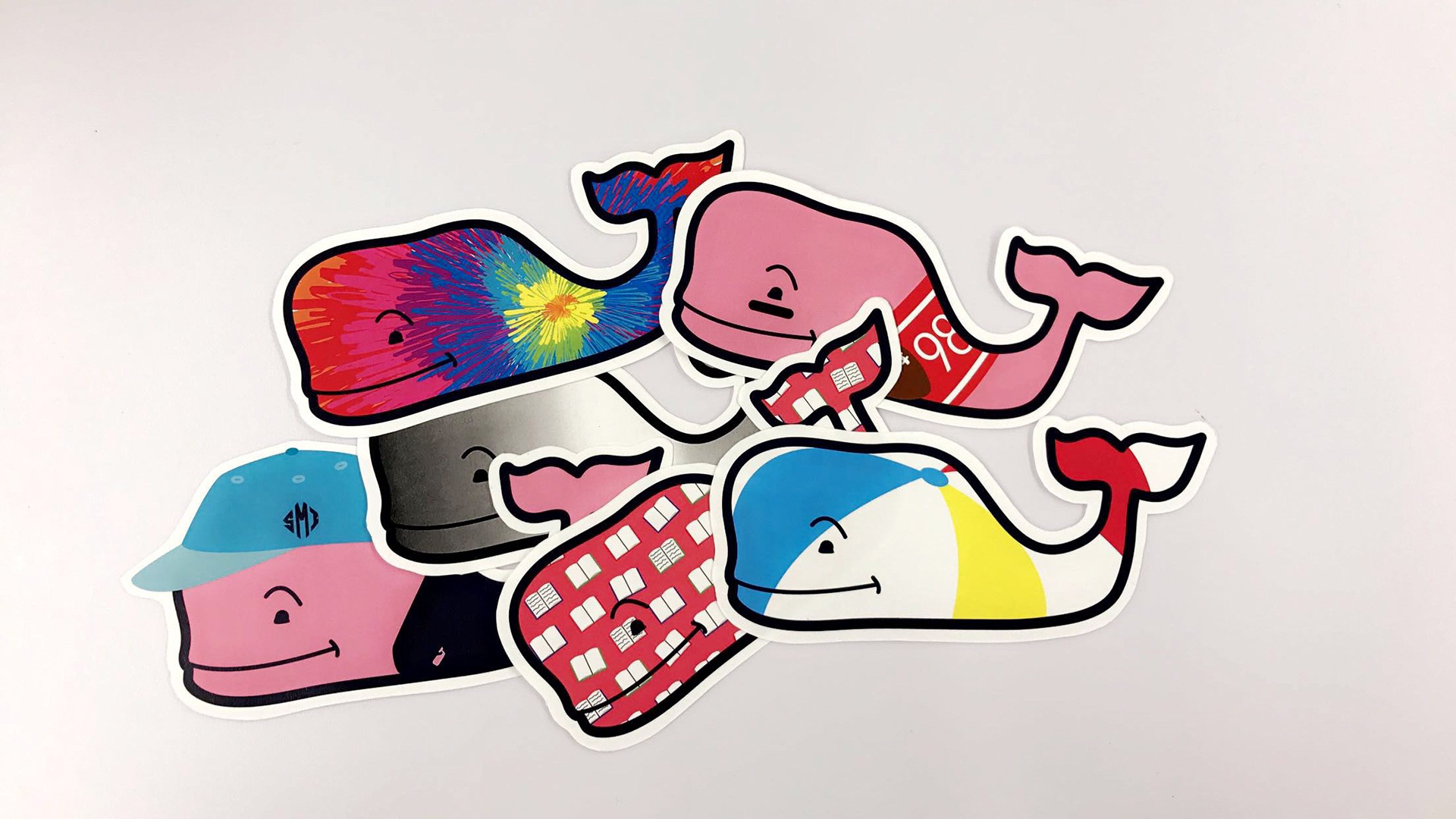 Some of the work done for the retail company Vineyard Vines from my past internship. Things below include stickers produced by the company that were given out in all stores, online, and used for window decals. Colored prop whales for Whales For A Cause, mock ups for the store, and a 4 page insert from their Fall 2 Catalog.